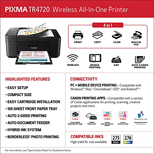 PRINT, COPY, SCAN, FAX: The PIXMA TR4720 is a real 4-in-1 printer that may be compact, versatile and simple-to-use.