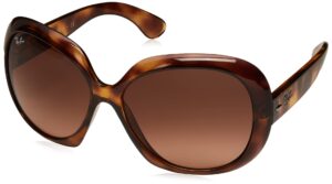 RB4098 Jackie Ohh Oversized Sunglasses feature a modern, lightweight nylon frame and oversized rectangular lenses. The Women’s RB4098 Jackie Ohh Oversized Sunglasses are to be had in classic black or tortoise frames and green or gradient lenses. To offer protection to your eyes from harmful UV rays, these sunglasses include lenses that are coated with 100% UV protection.